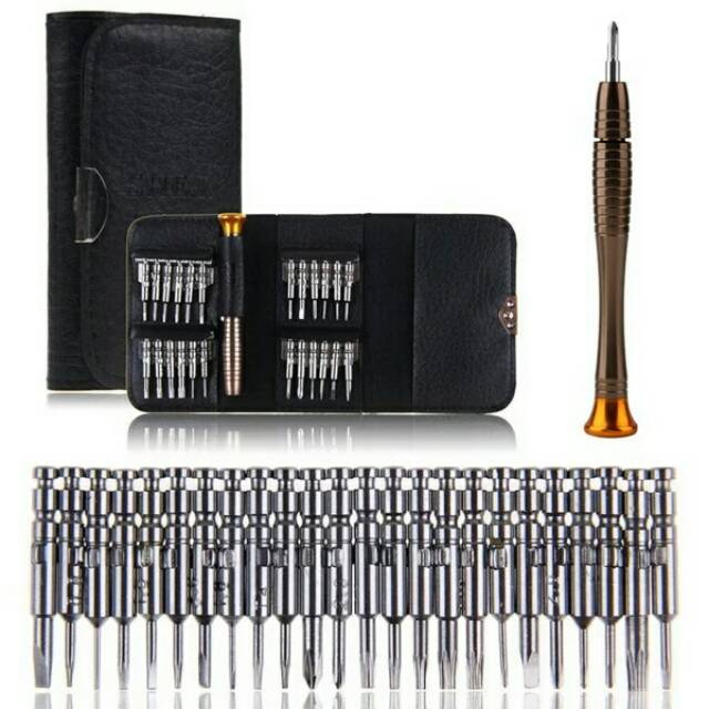 Obeng set berkualitas terdiri dari 25 jenis mata obeng seperti torx, philips, minus, penta, y, dll. Semua kebutuhan obeng Anda tersedia dalam satu paket ini. Sangat berguna terutama untuk Anda para teknisi handphone maupun user yang suka mengoprek smartphone / iPhone.Produk ini berbahan stainless sehingga tidak mudah berkarat dan juga sangat kuat digunakan dalam jangka waktu lama.Semua obeng dan gagang disimpan dalam tas kulit yang kecil sehingga udah untuk dibawa berpergian dan juga berguna untuk melindungi obeng dari debu dan karat.Isi paket ;Screwdriver HandleFive-star screw driver: 0.8 1.2Trox screw driver:T2 T3 T4 T5 T6 T7 T8 T9 T10 T15Y screw driver: 2.0Cross screw driver:1.0 1.2 2.0 3.0Flat screw driver: 1.0 1.5 2.0 3.0Point screw driver:0.8#obengset #obengiphone #obengandroid #obengmurah #repairtool #repairtoolkit #alatservis #openingtoolskit #opening