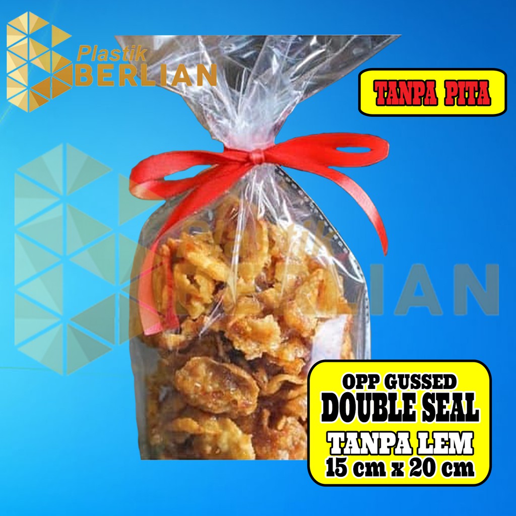 PLASTIK OPP GUSSED 5cm Double Seal tanpa lem/seal (33 mic)Kualitas TERBAIK , Harga TERMURAHBagian Bawah Bisa Berdiri Bagian Atas Tanpa Lem/seal Cocok Di Pakai Untuk Roti , Makanan , Souvenir , Dan Lain21 Pack isi 100/