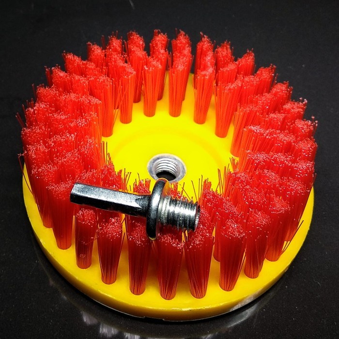 Sikat yg bisa digunakan untuk Sofa, WC, Lantai, Kamar Mandi, Kloset, Toilet, DLL dengan disambungkan ke Bor atau Obeng Listrik (hex chuck)Jadi gak perlu repot repot dan capek capek lagi, karena gosokannya sudah dilakukan oleh mesin, kita tinggal menempelkan saja ke barang yg ingin kita