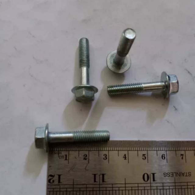 Baut topi / flange putih kunci 10 Diameter 6mm ( baut 10 )Panjang 3cmPutih galvanis R