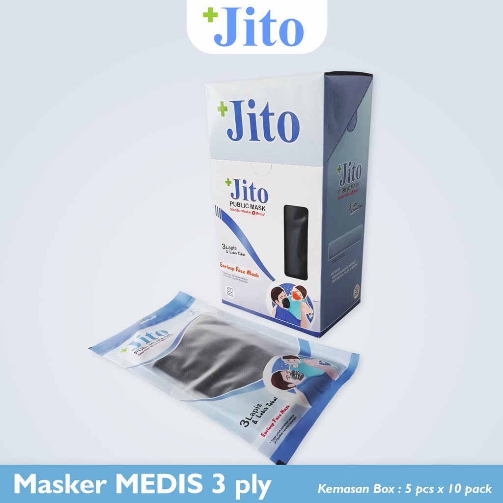 Name: Masker Jito Medis 3 Ply Hitam Earloop - Kemasan Box & Sachet Isi 5pcs X 10 Pack