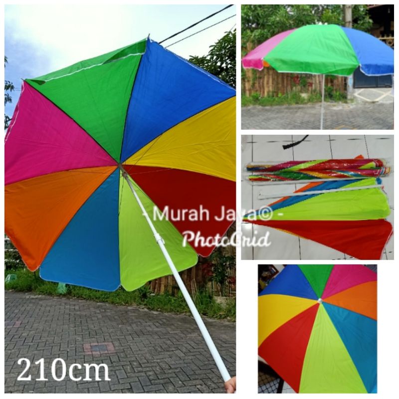 Dijual Payung tenda untuk jualan, atau taman, cafe dengan spesifikasi:- Payung 180 ini diameternya sewaktu dibuka jari2 melengkung menjadi +- (160 cm)Payung 190 ini diameternya sewaktu dibuka jari2 melengkung menjadi +- (170 cm)- Payung 200 ini diameternya sewaktu dibuka jari2 melengkung menjadi +- (180 cm)- Payung 210 ini diameternya sewaktu dibuka jari2 melengkung menjadi +- (190 cm) - Payung ini bisa dilipat- Tiang terdiri dari 2 bagian yang bisa disambung (94 cm dan 96 cm)- Tinggi tiang kalau disambung jadi -+190 cm (ketinggian bisa di sesuaikan)Pilihan warna : - Pelangi- Anti UV ( di balik payung terdapat lapisan bewarna silfer sehingga kain payung menjadi lebih tebal)**Semua payung yang dijual dalam kondisi baru.**Payung selalu kami packing dengan baik untuk mengurangi resiko rusak saat pengiriman.**Foto di etalase meruapakan foto asli produk sesuai ukurannya masing-masing**Tips Hemat:Supaya lebih hemat, kaki-kakinya sebenarnya bisa dibikin sendiri dari adukan semen yang dicetak di kaleng/ember bekas dan diberi pipa yang diameternya lebih besar dari tiang payungnya.Atau jika di tempat anda sudah ada sarana untuk mengikat payungnya secara kuat (meja yang kokoh, gerobak, pohon, mobil, tiang, dll), maka payung tinggal diikatkan saja kesana.**pengiriman menggunakan J&T:-pembayaran sebelum jam 3 sore dikirim hari yang sama-pengiriman setiap hari** pengiriman menggunakan sicepat dan JNEdikirim H+1 setelah pembayaran- hari Minggu dan tanggal merah akan dikirimkan saat hari kerja#payungtenda #payungkafe #payungpantai #payungtaman #payungparasol #payungpelangi #payungjualan #payungmurahterima