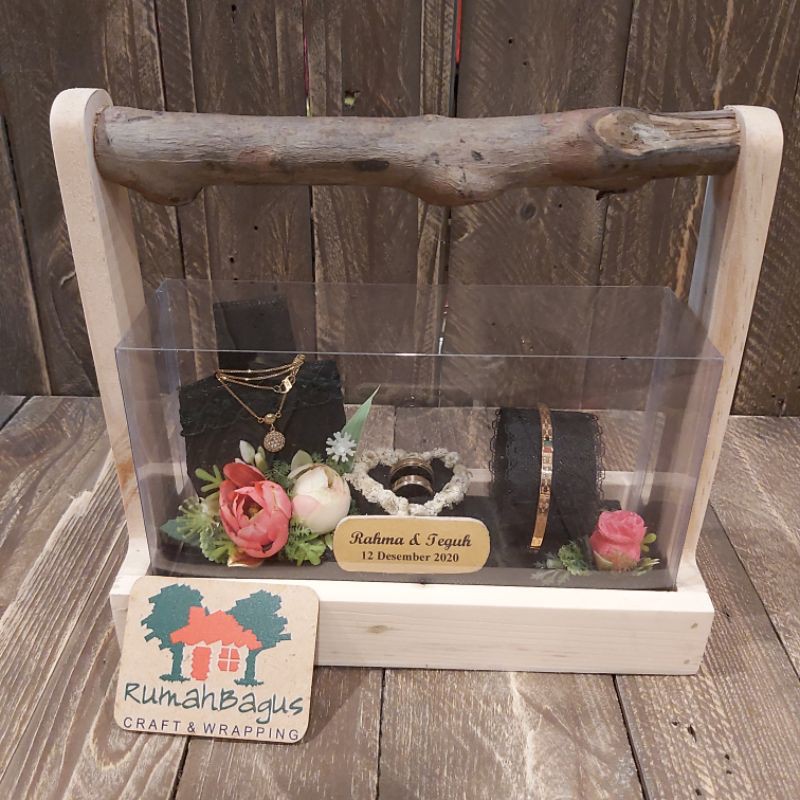 Ready stock kotak mahar, baki kayu pinus kombinasi batang kayu untuk gagang.ukuran 19x12x20cm, sudah di decor untuk kalung, gelang dan cincin, sudah dgn nama di printnama dan tgl tulis di pesan pembeli. #rumahbaguscraft #pusathampers #bakikayumika #kotakkayumika #kotakhantarankayu #kotakkayupinus #3dframe #maharscrapframe #bahancraft #pusatkotakkayu #rumahbaguscraft #wrappingstorebandung #etsy #onlineshopping #onlineshop #pita #jualpitasatin #jualbox #figurakayu #homedecor #tabledecor #giftideas #rumahbagus