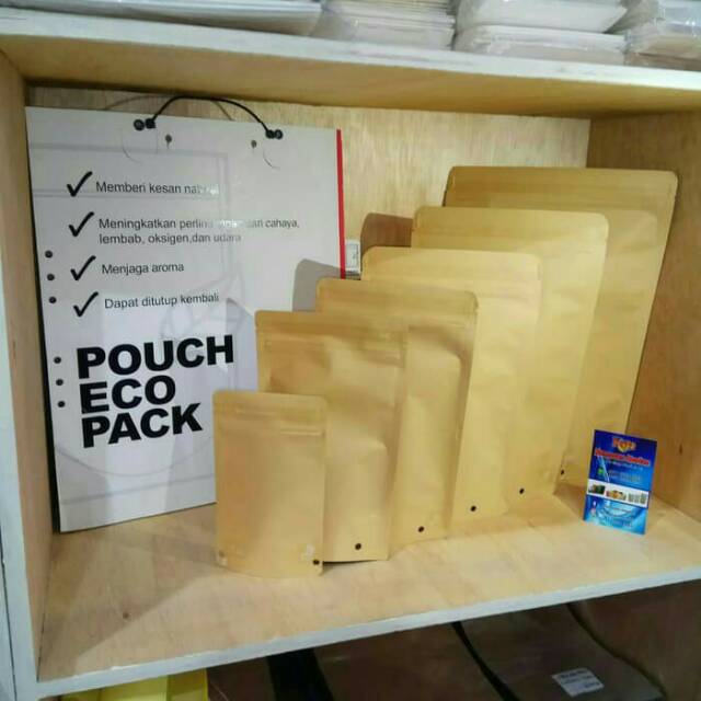 Pouch Paper / Eco PackDapat digunakan sebagai bungkusan kopi, snack, bubuk kopi, dan sebagainya.1 Pack isi 100pcsPembelian minimal 10pcs dan kelipatannya.Pembelian 1 Pack (100pcs) berlaku harga grosir.Varian dan Spesifikasi :Pouch Paper 150 ZWidth x Height x Bottom = 90 x 150 x 26 mm185 micronEstimasi : 50gr bubuk kopiPouch Paper 250 ZWidth x Height x Bottom = 130 x 205 x 38 mm185 micronEstimasi : 100gr bubuk kopiPouch Paper 500 ZWidth x Height x Bottom = 140 x 230 x 41 mm185 micronEstimasi : 250gr bubuk kopiPouch Paper 750 ZWidth x Height x Bottom = 160 x 225 x 44 mm185 micronEstimasi : 350gr bubuk kopiPouch Paper 1100 ZWidth x Height x Bottom = 180 x 290 x 53 mm185 micronEstimasi : 500gr bubuk kopiPouch Paper 2200 ZWidth x Height x Bottom = 225 x 330 x 62 mm200 micronEstimasi : 1000gr bubuk