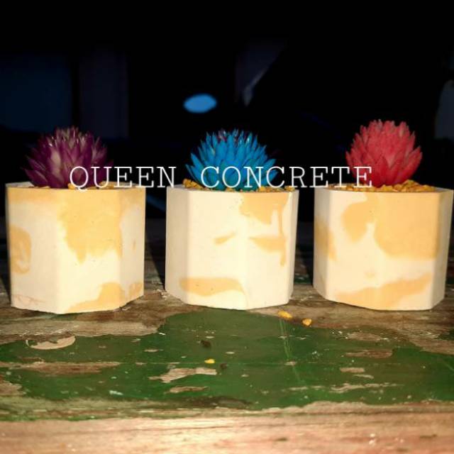 Pot Mini Marble Kuning Putihterbuat dari perpaduan semen putih dan semen warna Kuning. 100% semen tanpa cat. photo Asli tanpa Edit dan Tambahan C