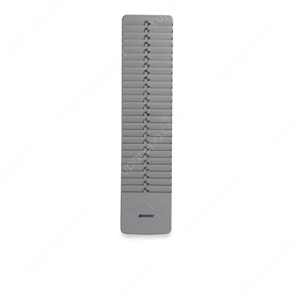 Permudah kebutuhan kantor Anda dengan Rak Kartu 50 Slot dari Krisbow. Rak ini dapat digunakan untuk menyimpan kebutuhan arsip absensi kerja, kebutuhan dinas, atau yang lainnya. Terdiri dari 2 baris susun yang dapat digunakan untuk menyimpan 50 buah arsip. Menjadikan arsip-arsip penting Anda semakin rapi dan mudah untuk dikontrol. Alat ini dapat digunakan dengan cara digantung pada dinding dengan cara dikaitkan. Brand : KRISBOWSpesifikasi:Warna abu-abu50 rak kartuMudah dipasang pada dindingDimensi produk : 88,8 x 20,8 x 3