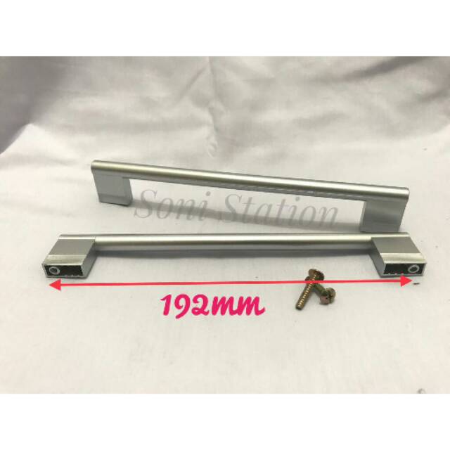 jarak antara lubang baut = 192mmpanjang total = 200mmhandle berbahan plastikwarna Silverharga per pcs sudah termasuk baut