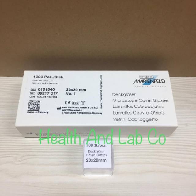 Deck Glass For Microscope / Kaca Penutup Untuk Microscope Kemasan : 1 Kotak Isi 100 PcsMerk : Superior Marienfield Buatan : Jerman Ukuran : 20x