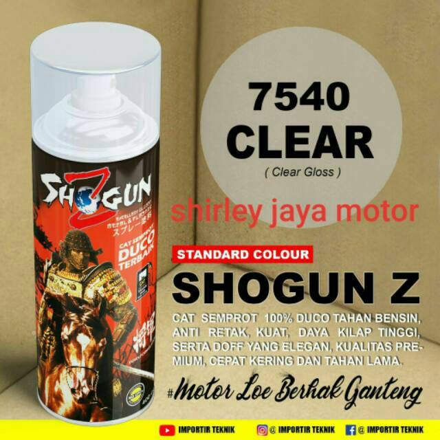 Shirley Jaya Motor memberi tidak sedikit profit terhadap pelanggan. Tidak sedikit orang telah menemukan keuntungan dari membeli online dan karenanya, pelanggan semakin memilih untuk memakai mode belanja ini untuk belanja Shogun Z Cat Semprot Tahan Bensin Antik Retak 400cc Clear 7540. Ini menjelaskan apa sebab ada peningkatan skala pelanggan yang menggunakan beli on line. Kadang kala, selain bisa semakin cepat mendapatkan barangnya dengan perantara membeli online, Kalian dapat mendapatkan Perlengkapan dengan harga lebih rendah dari yang dipajang di toko retail biasa.